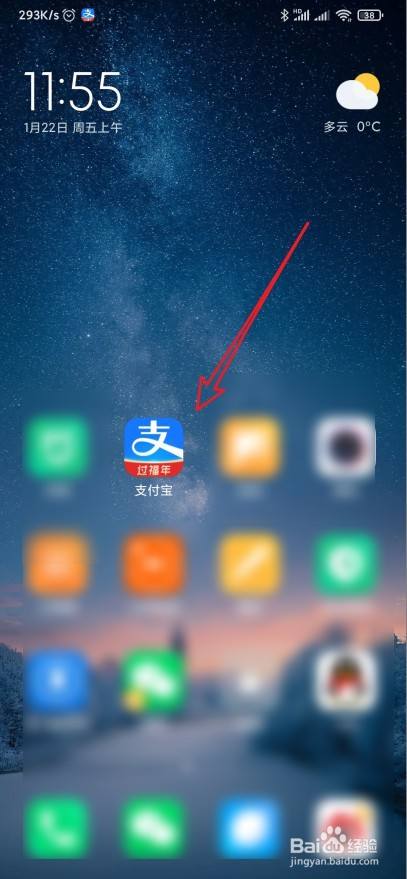 首先在手机屏幕上摆布滑动,点击支付宝的图标。