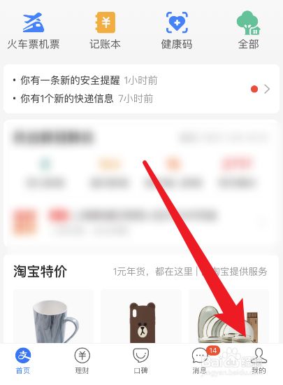 下一步点击花呗页面右下角的我的。