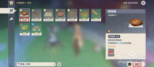 选择一个菜品如【烤肉排】,再点击右下角的【建造】按钮。