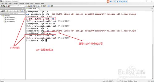 4.输入mv aa cc并按回车暗示将aa文件夹的名称改为cc