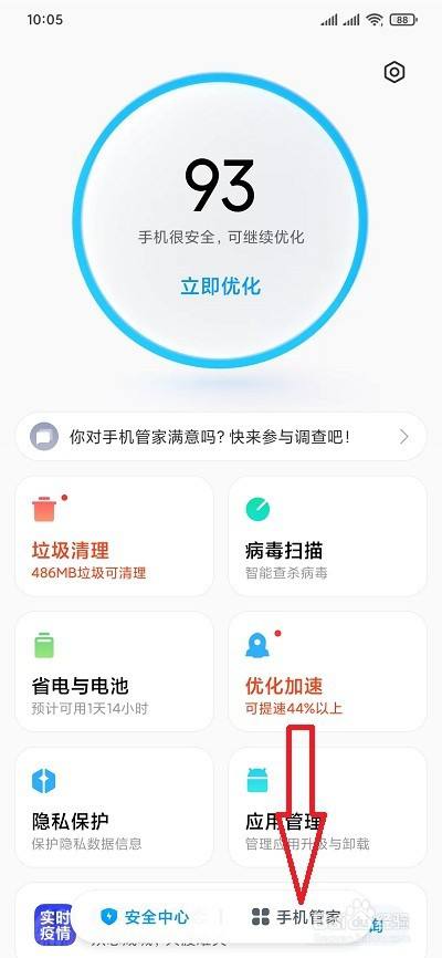 首先,我们在红米手机桌面上找到并点击手机管家