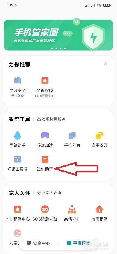 在系统东西栏目,我们点击【红包助手】
