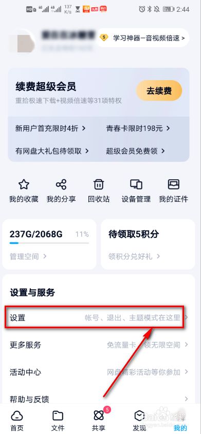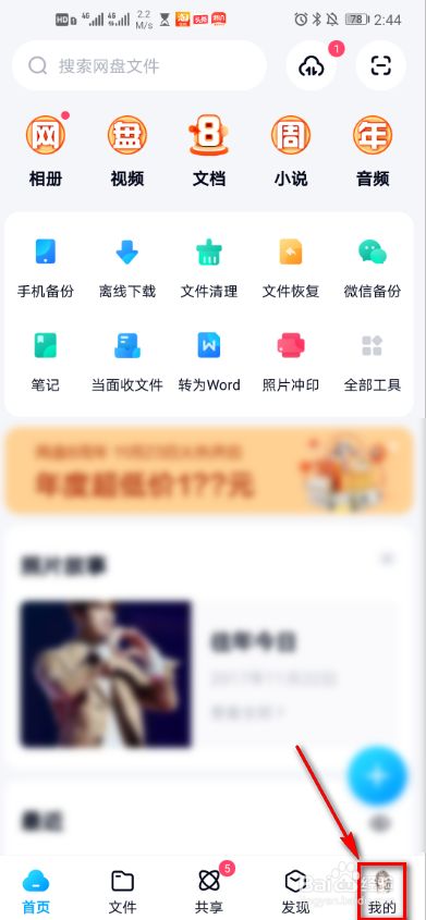 打开百度网盘,点击右下角【我的】图标。
