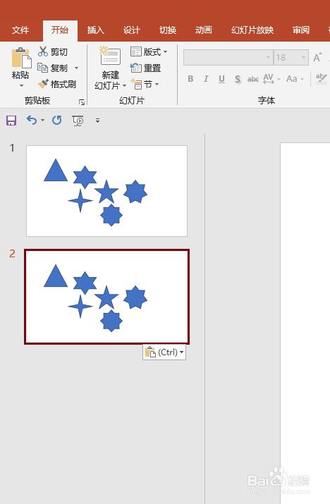 选中第二页PPT,清算第二页PPT中的图形,将其摆列整洁。