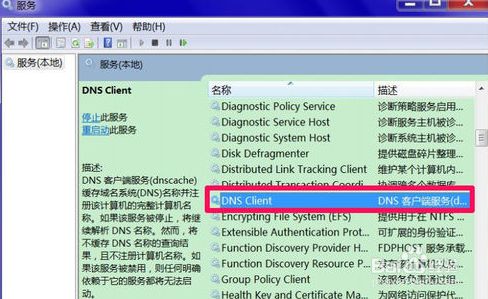 8、 进入系统办事窗口后,找到DNS Client这一项,双击打开属性点窜窗口。