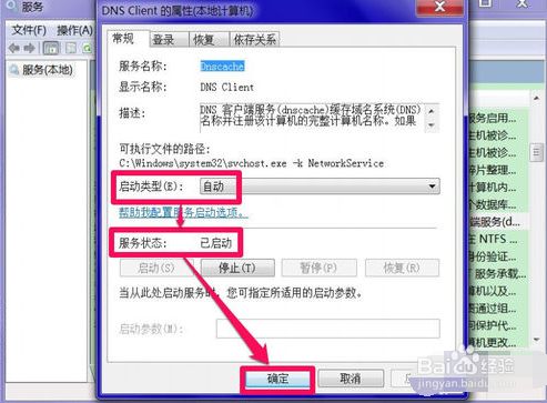 进入系统办事窗口后,找到DNS Client这一项,双击打开属性点窜窗口。