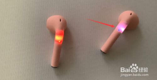 从充电仓中掏出耳机,如图所示耳机指示灯红蓝瓜代闪灼。