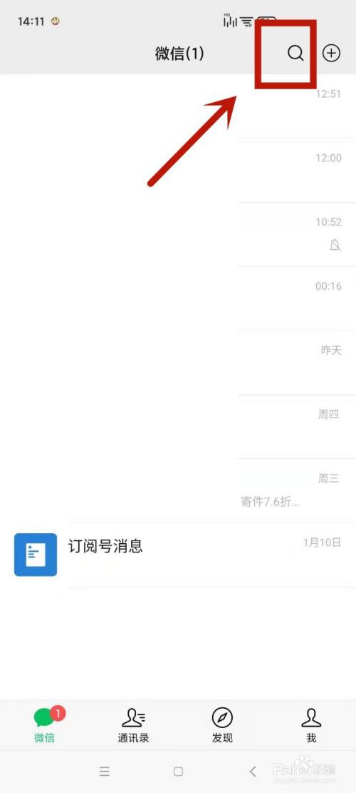 在微信内首页,点击左上角的搜刮小标记。