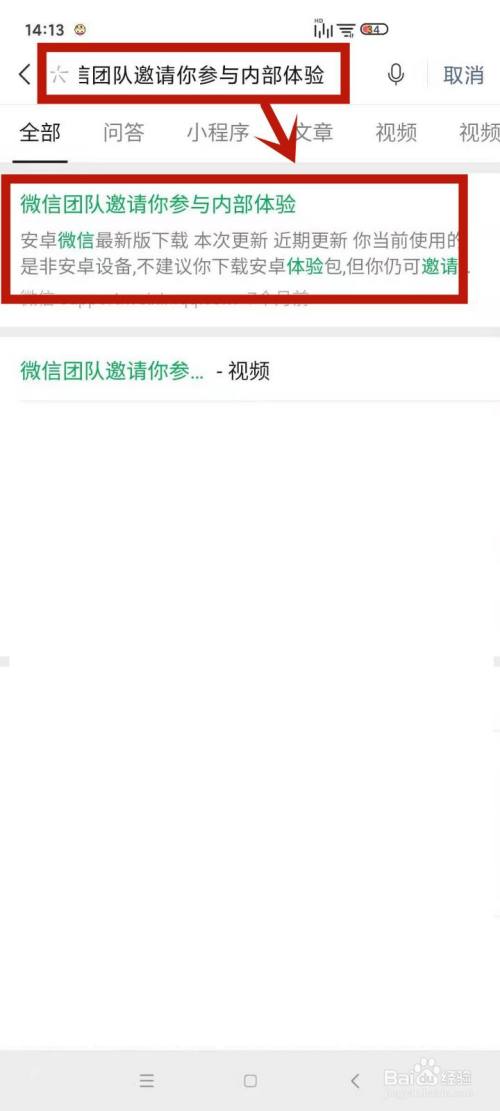 编纂搜刮“微信团队邀请您介入内部体验”,找到后并点击进入。