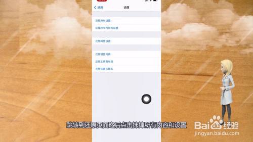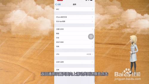 返回通用设置页面标的目的上滑动找到还原并点击。