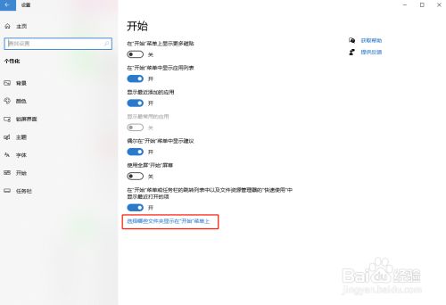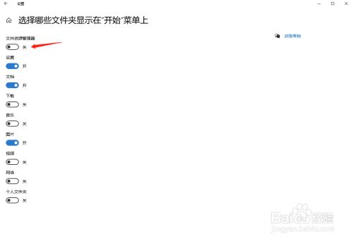 将要显示在开始菜单上的文件夹下的开关点击打开即可。