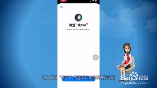 进入设置“嘿Siri”界面后点击继续进行设置。