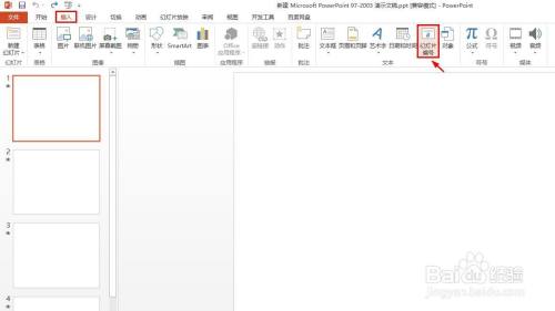 第二步:在菜单栏“插入”中,选择“幻灯片编号”。