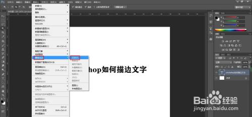 第七步:选中文字图层,选择菜单栏“编纂”中的“描边”。