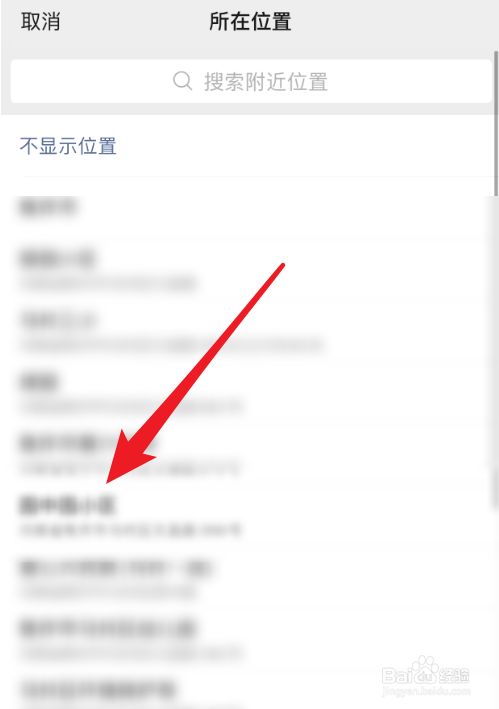 进入到状况位置的选择页面,找到当前的位置信息,点击它