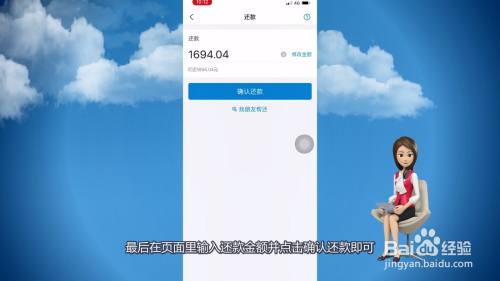 6、最后在页面里输入还条目金额并点击确认还条目即可。