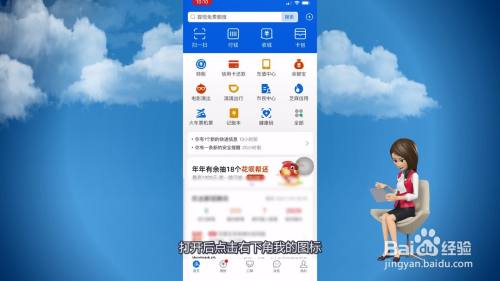 1、首先进入支付宝,打开后点击右下角我的图标。