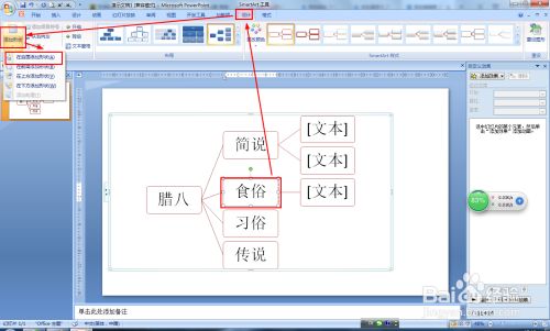 点击“食俗”文本框——同样按步调4一样添加三个下级分支,别离输入:•腊八粥 •腊八泡蒜 •腊八豆腐。