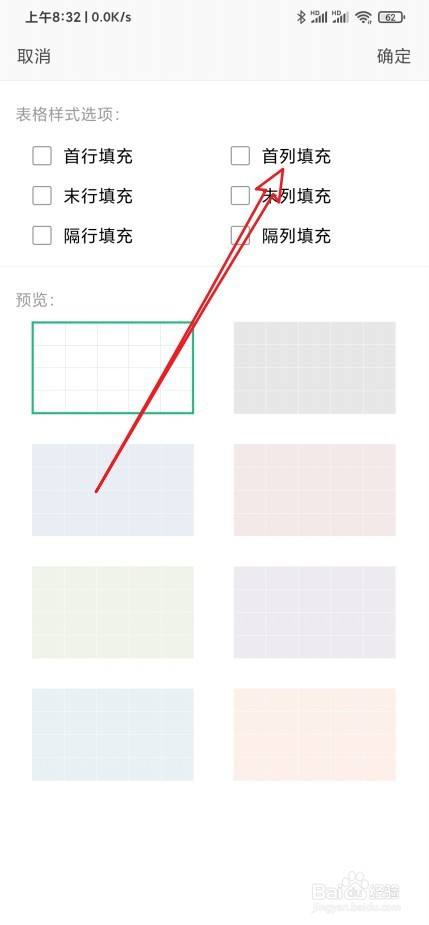 接着在打开的页面找到首列填充设置项。