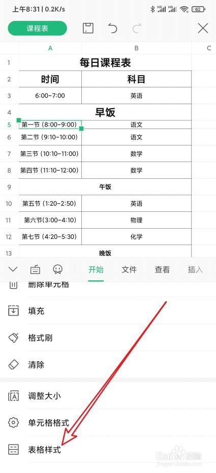 然后在弹出的菜单中点击表格样式菜单项。