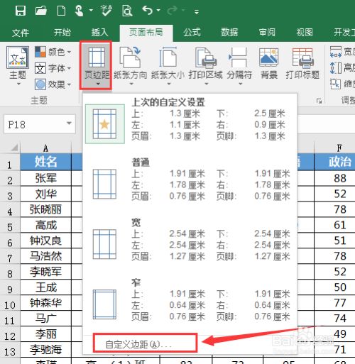 在弹出的下拉菜单中,我们点击【自界说边距】