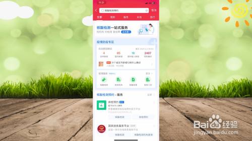 首先我们打开支付宝,在上方搜刮核酸检测预约
