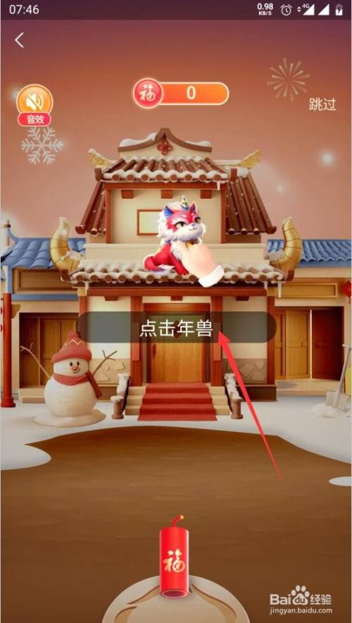 第4步,在游戏中快速的点击年兽,中心会有文字呈现,也需要快速点击。