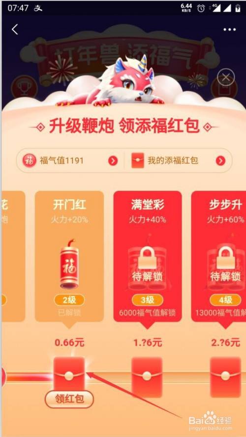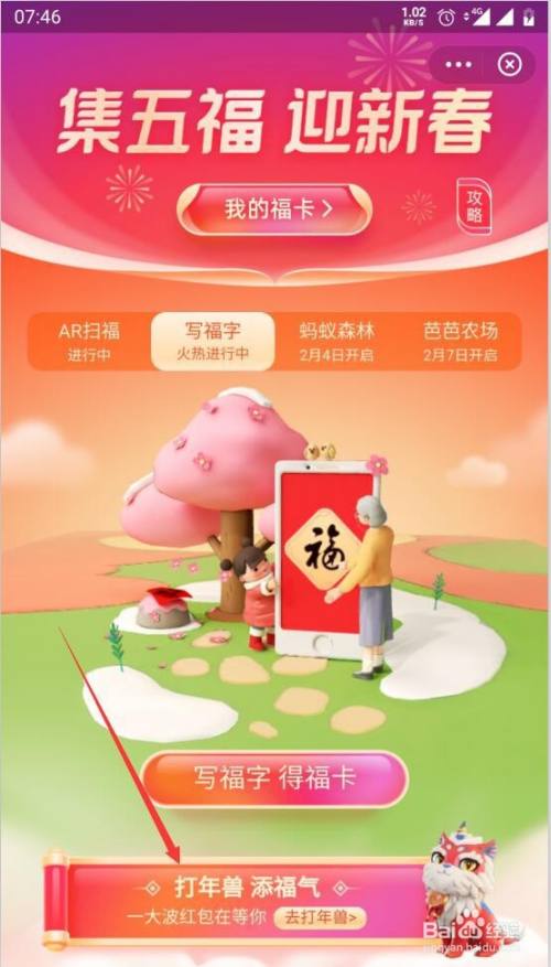 第2步在集五福活动页面点击打年兽添福分
