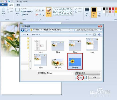 第四步:在弹出的“粘贴来历”对话框中,选中第二张图片,并单击“打开”按钮。