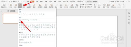 首先打开ppt,点击导航栏上的“插入-外形”选择“矩形”