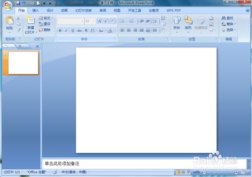 打开powerpoint,将单击此处添加题目和副题目两个输入框删除;