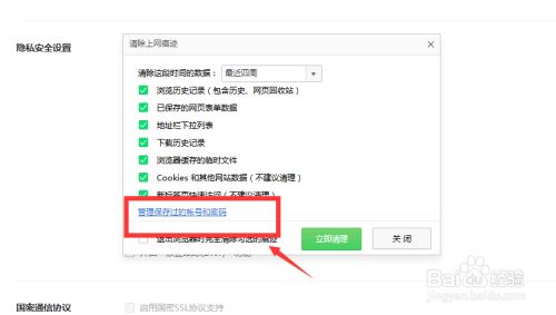 接着在弹出的清理上网陈迹里,点击“办理保留过的账号和密码”。