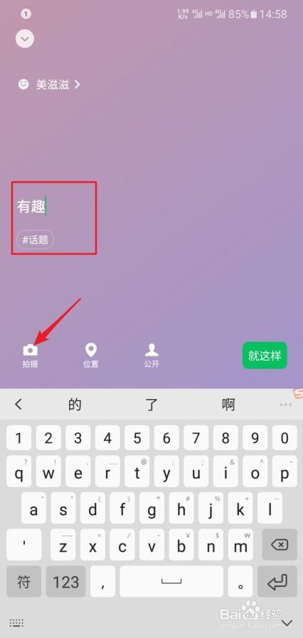 编纂话题并点击拍摄。