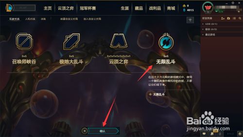 工具/原料台式机:win10教育版英雄联盟WeGame方式/步骤1打开WeGame,选择英雄联盟,点击【启动】。2在LOL客户端点击左上角的【PLAY】。3选择游戏模式为【无限乱斗】,点击【确认】。4在房间中点击【寻找对局】。5对局寻找到今后点击【接管】。6随机选择本身的英雄,调成天赋和技术,期待倒计时竣事即可进行游戏了。END