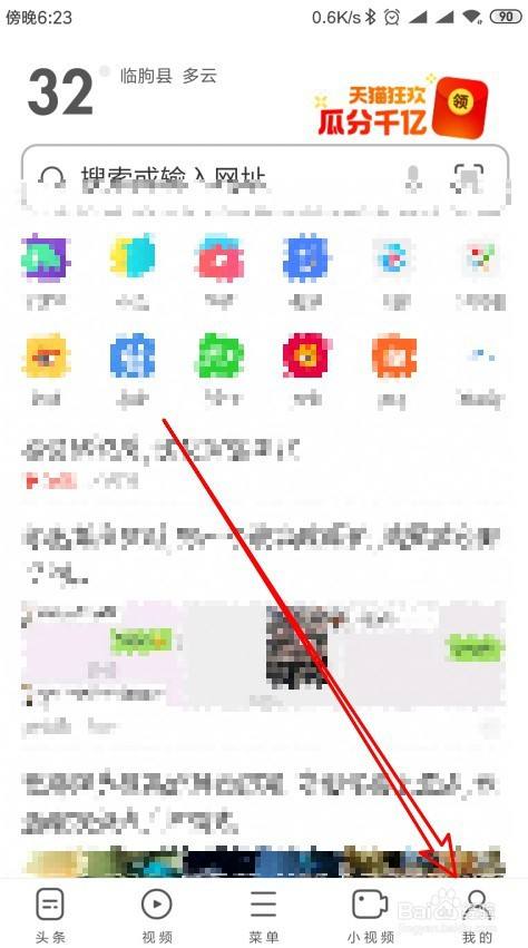 在手机屏幕上打开UC浏览器,点击软件本家儿界面右下角我的选项卡。