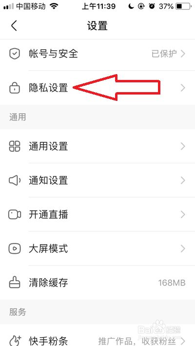 在快手设置页面,我们点击【隐私设置】