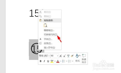 然后点击右键,再次点击切换域代码,把域代码转为编号显示。