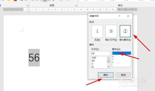 点击“带圈字符”。选中圆圈外形,增大圈号,点击确定。