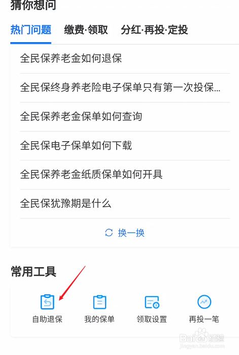 在客服页面中,点击自助退保选项。