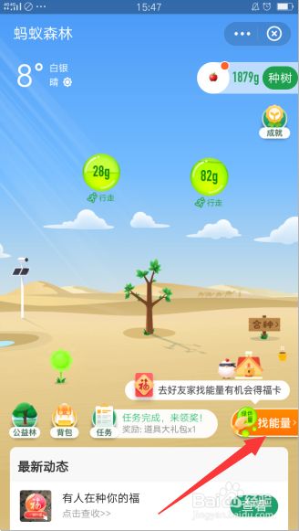 在本身的丛林界面点击右下角的【找能量】。
