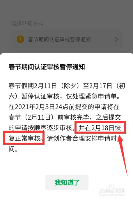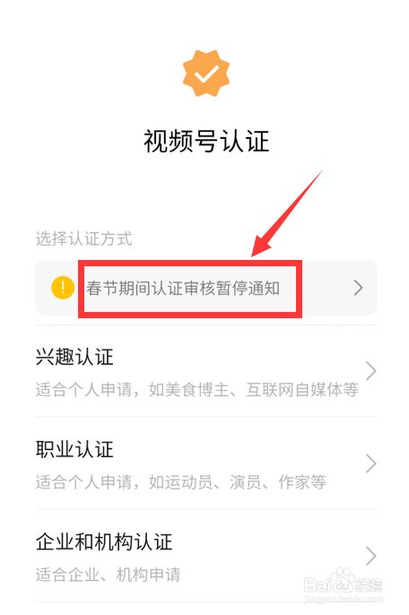 然后点击春节暂停认证的通知。