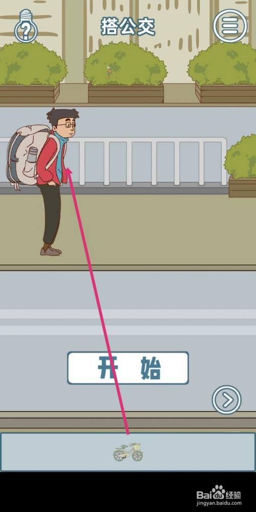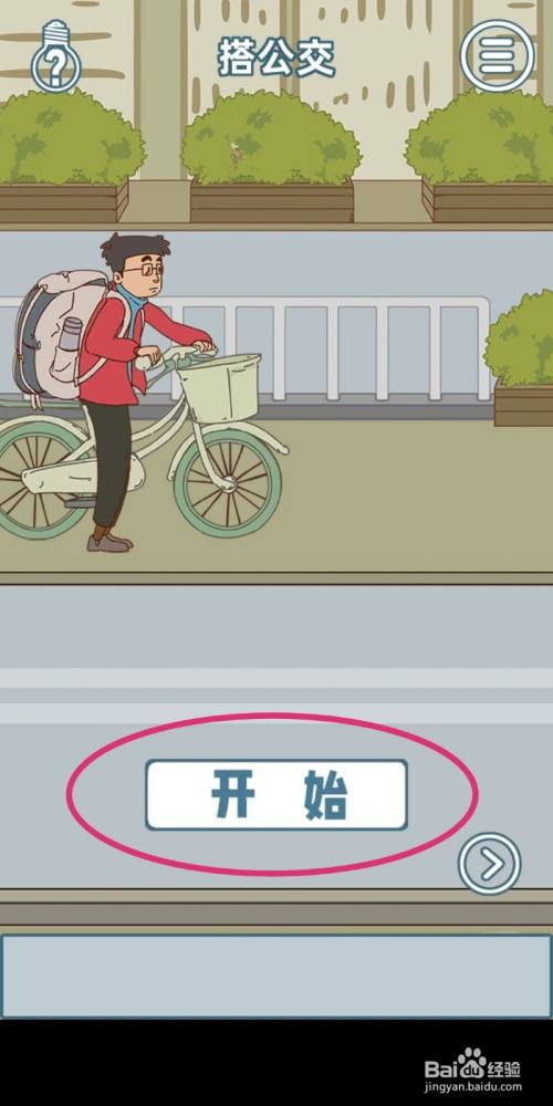 骑着自行车的本家儿角顺遂达到公交站台,赶上了公交车,游戏就过关了。
