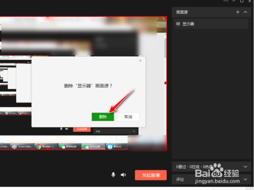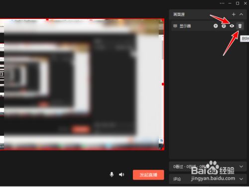 选择当前直播画面,点击删除图标。(也可选择埋没)