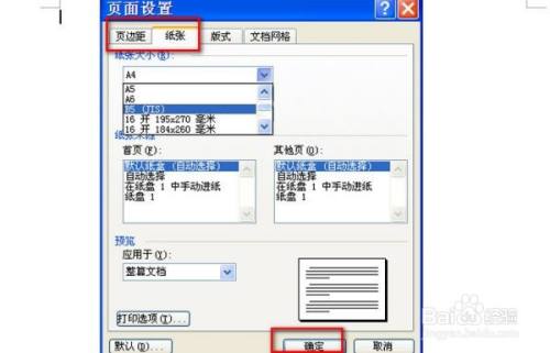 在页面设置对话框中,在“页边距”选项中选择纸张偏向为横标的目的,在“纸张”中设置纸张大小为b5,点击确定。