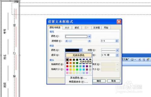 调整文本框的位置至最左边,右键单击文本框选择设置文本框格局,接着设置线条颜色为无颜色填充,密封线就做好了。