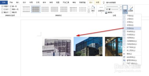 然后选中表格,并在设计选项卡下点击无边框,具体如图所示: