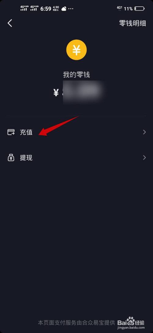 充值当作功,点击完当作,回到我的零钱页面查看。