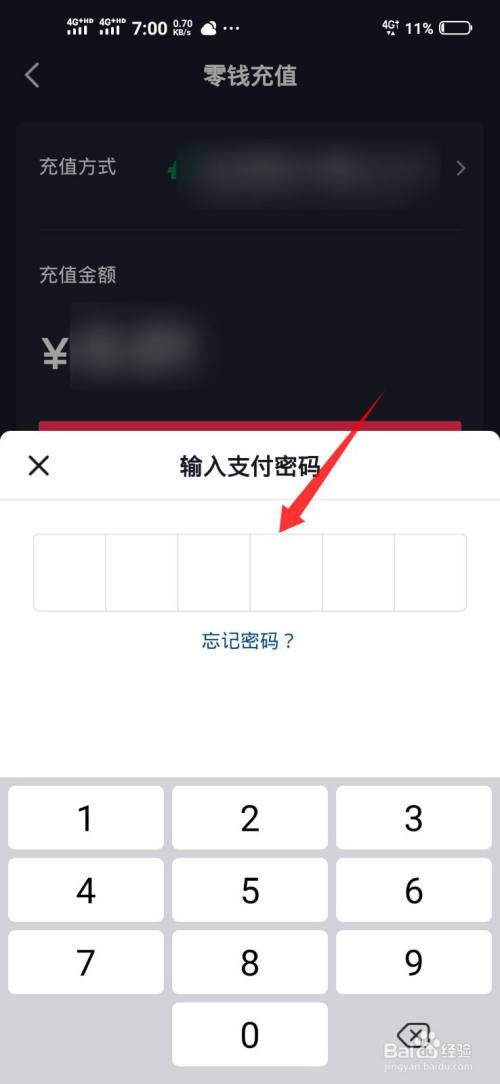 在这里需要输入抖音的支付密码。注重不是银行卡的支付密码。
