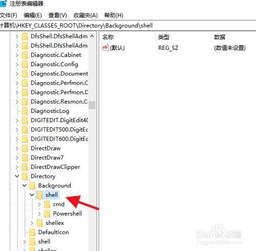 找到注册表的路径为\HKEY_CLASSES_ROOT\Directory\Background\shell。