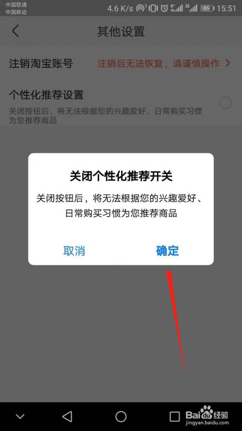 “其它设置”页面依据指引点击“个性化保举设置”开关标识。如图所示: